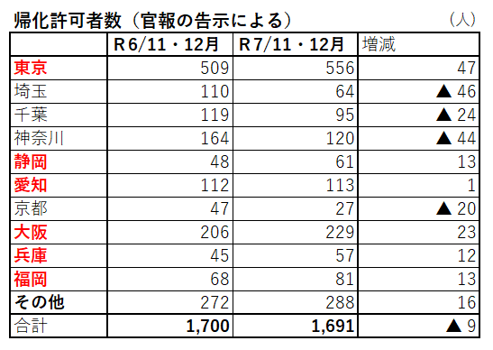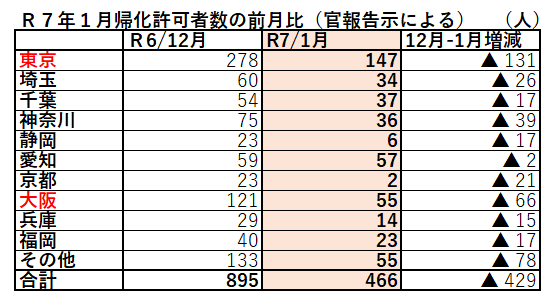 帰化許可ラッシュ月(12月)の反動?
